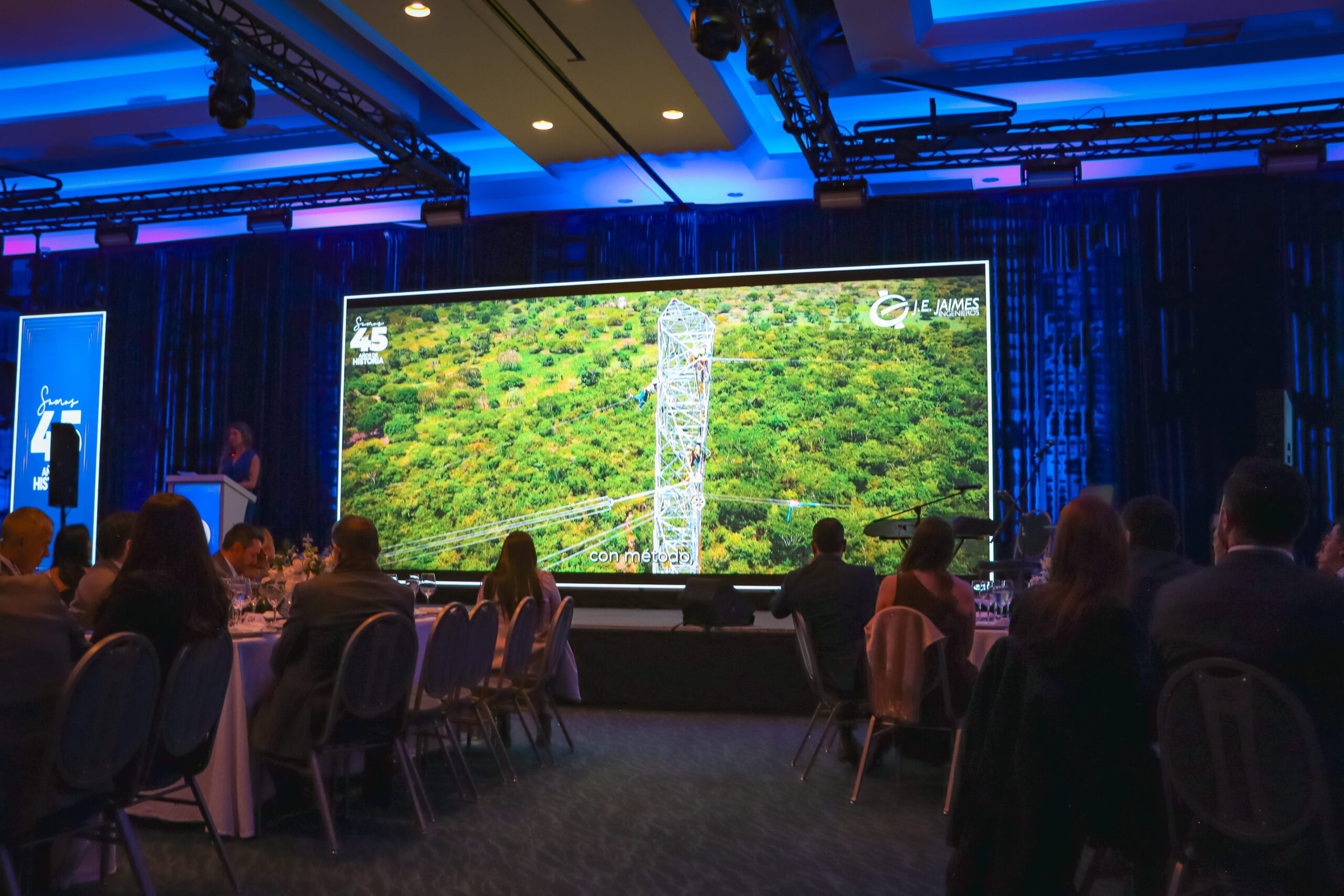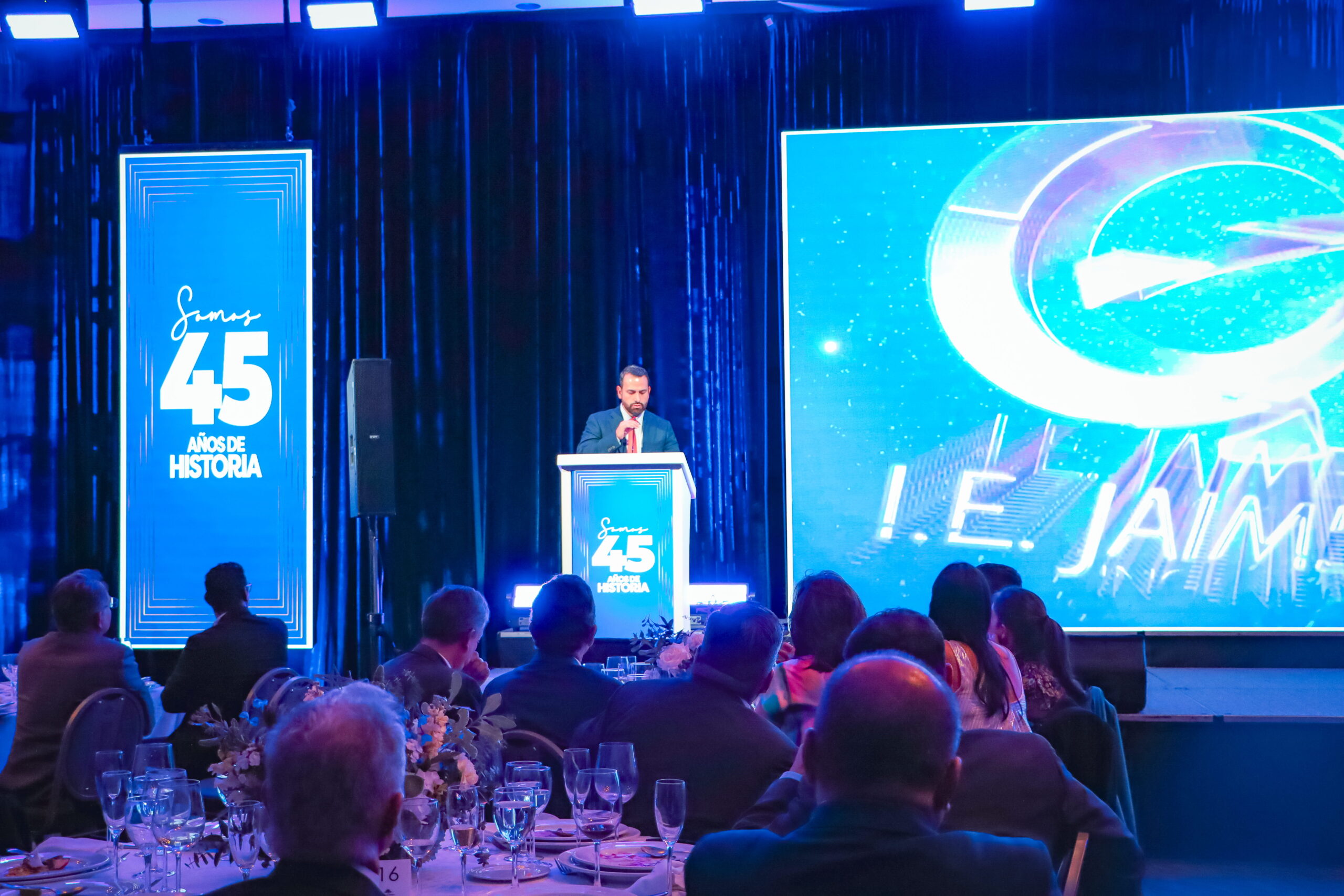 A través de 45 años de actividad como ejecutores de proyectos a nivel nacional e internacional, hemos tenido la oportunidad de prosperar y crecer al lado de quienes confían en nuestra gestión integral. Para enmarcar esta historia, la celebración inició con uno de los momentos más emotivos de la noche: la intervención de nuestro Gerente General, Enrique Jaimes, quien compartió un video conmemorativo que rinde sentido homenaje a nuestro extenso recorrido institucional.